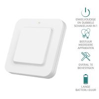 | Inhoud verpakking | Draadloze wandschakelaar + batterij + enkele en dubbele frontplaat + bevestigingsmateriaal |