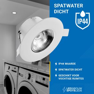 Verlicht diverse ruimtes met deze trendy, witte inbouwspot. Plaats hem bijvoorbeeld in het plafond in de woon- of badkamer, keuken, buiten onder een veranda of onder een overkapping. Deze led spot heeft een uniek design door het ontwerp van de glasplaat en zijn stralingshoek. Het licht wordt door de diffuser op een sfeervolle en warme manier door de ruimte verspreid. Door de ingebouwde driver is de inbouw led-spot direct aansluitbaar op 230 volt. Ook is hij IP44-spatwaterdicht, waardoor de spot geschikt is voor zowel vochtige ruimtes, zoals in de schuur, als droge ruimtes.