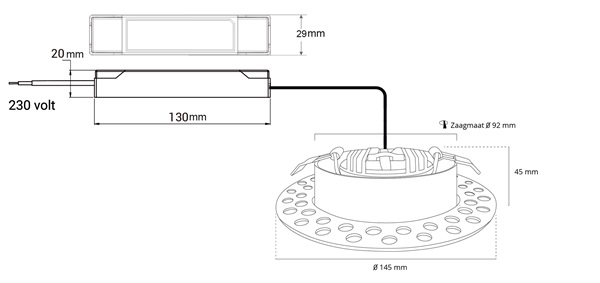 | Afmeting led driver (l x b x h) | 130 x 29 x 20 mm |
