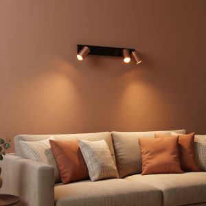 Aluminium dimbare roodbronzen wandlamp inclusief 3 verwisselbare 4000 kelvin Philips 4 watt GU10 led spot, direct aansluitbaar op 230 volt. Geeft koel wit licht en is IP21 stofdicht.